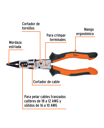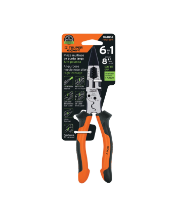 ALICATE MULTIUSO 8″ PUNTA LARGA 6 EN 1 COMFORT GRIP, TRUPER