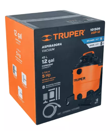 Aspiradora de sólidos y líquidos de 12 gal en acero inox
