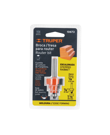 • CUERPO DE ACERO AL CROMO Y CUCHILLA DE CARBURO DE TUNGSTENO • GUÍA DE BALERO QUE FACILITA EL RECORRIDO EN BORDES •  ZANCO DE 1/4″ •  PARA APLICACIONES DE FRESADO EN ROUTER •  CORTES LIMPIOS EN MADERA (DURA Y BLANDA), MDF, LAMINADOS Y MADERA CONTRACHAPADA