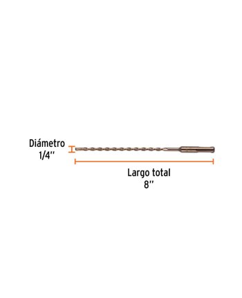 BROCA SDS PLUS 1/14 X 8″ DIÁMETRO: 1/4 (6.5 MM) LARGO TOTAL: 8″ (200 MM)