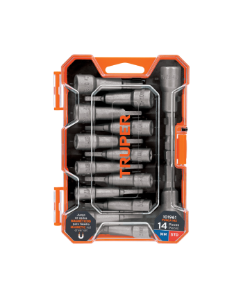 INCLUYE: NÚMERO DE CASQUILLO 10, 11, 12, 13, 14, 15, 16, 17, 18, 19, 21, 22, 24, 27, 30, 32 MM. 1 PIEZA: MANGO DE TRINQUETE DE 1/2″, LONGITUD 10 PULGADAS