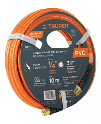 MANGUERA DE POLIURETANO DE 7.5 M Y PISTOLA METÁLICA DE AIRE PARA SOPLETEAR Y GANCHO PARA COLGARSE