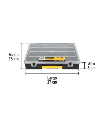 • TAPA QUE PERMITE VER EL CONTENIDO Y EVITA QUE LAS PIEZAS SE MUEVAN A OTROS COMPARTIMENTOS.